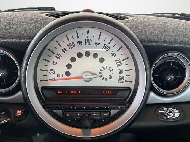 Airbag Fahrer-/Beifahrerseite, Audiosystem MINI CD (Radio/CD-Player), Auspuffanlage (1-Rohr-Anlage) mit Blende, AUX-IN-Anschluss (AUX-IN), Außenspiegel elektr. verstellbar, Außenspiegel schwarz, Außentemperaturanzeige, Bremsassistent, Drehzahlmesser, Elektron. Bremskraftverteiler, Getränkehalter vorn und hinten, Innenausstattung: Interieur-Oberfläche White Silver, Isofix-Aufnahmen für Kindersitz an Rücksitz, Karosserie: 2-türig, Lenksäule (Lenkrad) mechan. verstellbar, Modellpflege, Motor 1,6 Ltr. - 72 kW 16V, Nebelschlussleuchte integriert, Park-Distance-Control (PDC), Reifen-Reparaturset (Mobility-Pack), Rücksitzlehne geteilt/klappbar, Schadstoffarm nach Abgasnorm Euro 5, Seitenairbag vorn, Sitz vorn links mechanisch höhenverstellbar, Verdeck schwarz, Verdeckbetätigung vollautomatisch, Verglasung grün getönt, Wärmeschutzverglasung getönt, Zweiter Schlüssel mit Fernbedienung