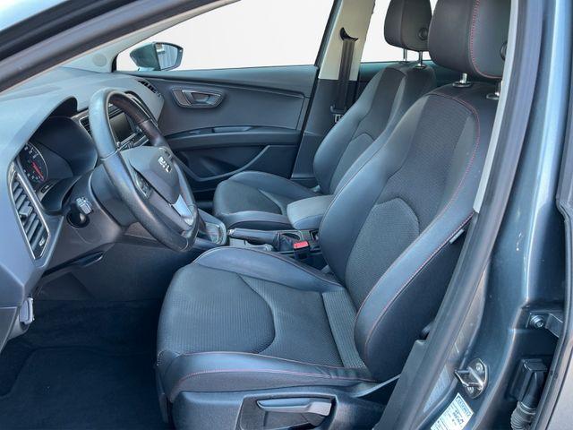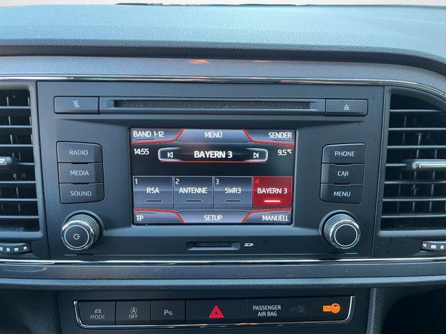 8 Lautsprecher, Ablagetasche an Vordersitzlehnen, Airbag Beifahrerseite abschaltbar, Airbag Fahrer-/Beifahrerseite, Antriebs-Schlupfregelung (ASR), Außenspiegel elektr. anklappbar, Außenspiegel elektr. verstell- und heizbar, beide, Außenspiegel und Türgriffe außen in Wagenfarbe, Außentemperaturanzeige, Blinkleuchten LED in Außenspiegel integriert, Bordcomputer, Bremsassistent, Elektron. Differentialsperre (EDS), Fahrassistenz-System: Berganfahr-Assistent (Hill-Holder), Fahrassistenz-System: Berganfahr-Assistent und Elektron. Differentialsperre, Fahrassistenz-System: Fahrprofilauswahl (SEAT Drive Profile), Fensterheber elektrisch hinten, Handschuhfach beleuchtet, Heckleuchten LED, Innenausstattung: Chrom-Applikationen, Isofix-Aufnahmen für Kindersitz, Karosserie: 5-türig, Klimaanlage Climatronic 2-Zonen, Knieairbag Fahrerseite, Kopf-Airbag-System, Kopfstützen hinten (3-fach), Kopfstützen vorn verstellbar, Lendenwirbelstütze Sitz vorn links, verstellbar, Lendenwirbelstütze Sitz vorn rechts, verstellbar, Lenkrad (Sport/Leder), Mittelkonsole vorn mit Mittelarmlehne, Becherhalter, Ablagebox und Luftdüsen hinten, Motor 1,4 Ltr. - 103 kW 16V TSI, Reifen-Reparaturset, Reifenkontroll-Anzeige, Rücksitzlehne geteilt/klappbar (1/3-2/3), Schadstoffarm nach Abgasnorm Euro 5, Schalt-/Wählhebelgriff Leder, SEAT Media-System Touch Colour, Seitenairbag, Seitenscheiben hinten und Heckscheibe abgedunkelt, Sitz vorn links höhenverstellbar, Sitz vorn rechts höhenverstellbar, Sonnenblende links mit Spiegel (beleuchtet), Sonnenblende rechts mit Spiegel (beleuchtet), Sport-Fahrwerk FR / Cupra, Sportsitze vorn, Sprachsteuerungs-System, Start/Stop-Anlage, Stau-/Ablagefach unter Sitze vorn, Steckdose (12V-Anschluß) vorn, Stoßfänger lackiert, Wärmeschutzverglasung,